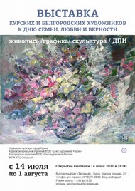 14 июля в 16.00 в выставочном зале МБУК КТЦ «Звёздный» (Красная площадь 2/4) состоится открытие выставки курских художников, посвящённой Дню семьи, любви и верности. На выставке будут представлены произведения живописи, графики, скульптуры и прикладного искусства.